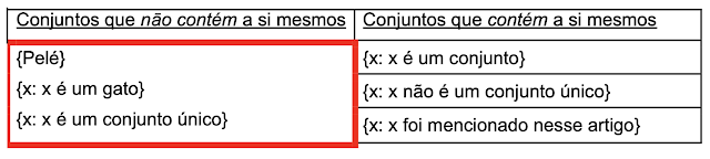 Pense em todos os conjuntos que contém e que não contém a si mesmos