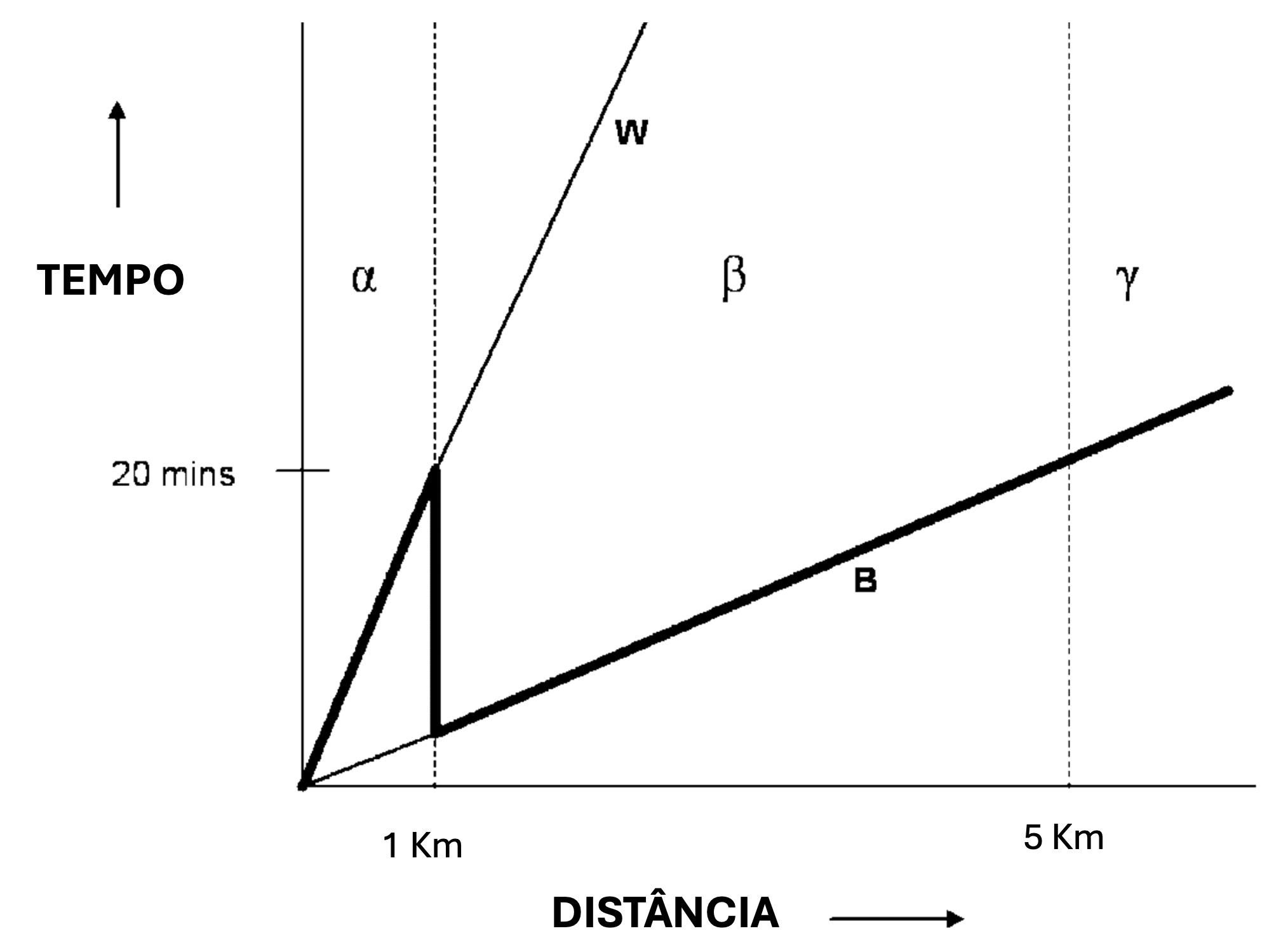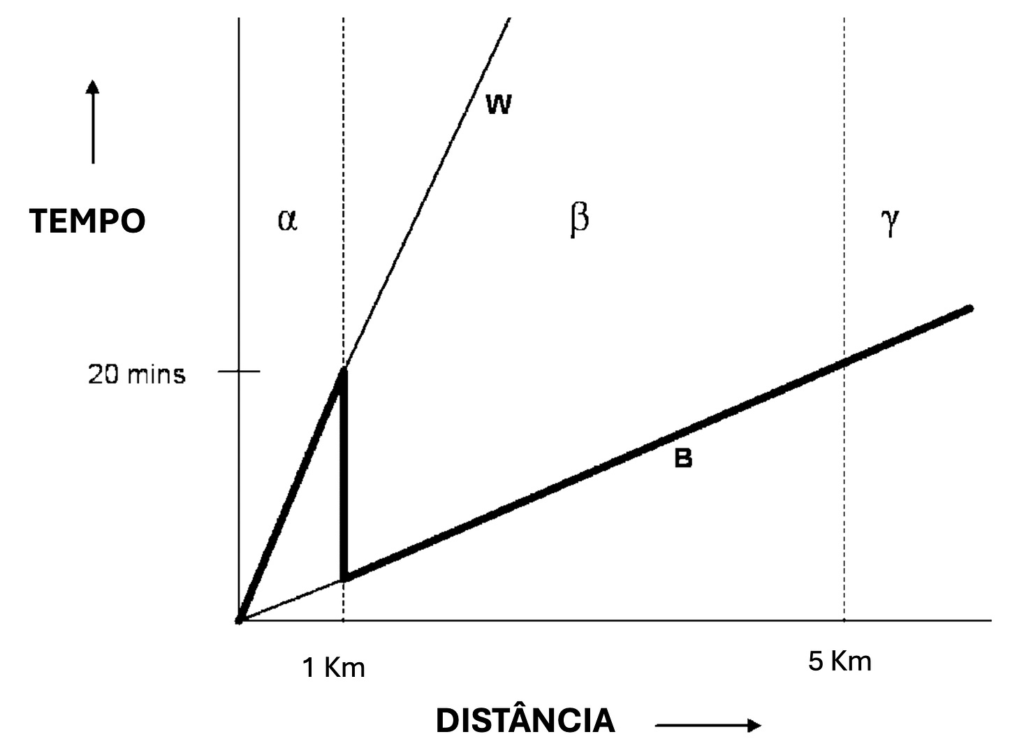 Considere uma pessoa tendo que escolher entre caminhar ou ir de bicicleta para certo lugar. A pessoal provavelmente vai decidir ir caminhando quando as distancias forem pequenas e pedalar quando forem grandes.